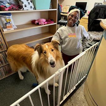 2/14/26: I’ve officially joined the Reif family, and I’m proud to say I’m a working man now! Mom takes me to work with her at the hospital almost every day, and I’ve quickly become quite the favorite. Everyone there gives me so much love with hugs, pets, and plenty of belly rubs from both the staff and the clients. I’ve even learned a few new tricks and am really enjoying this wonderful new chapter in my life. At home, I share my space with a few other critters, and I do just fine with the rabbits and even that bearded dragon… whatever that funny-looking thing is! This is truly the perfect home for me, and I couldn’t be happier.