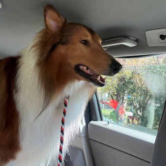 9/26/25: Hi friends! I grew up in the country with lots of acres to run on. One day my curious paws took me onto a neighbor’s land and yikes, he shot me right in the behind. My person didn’t have a car or the money to get me to the vet, but thankfully Collie Rescue swooped right in and saved me. The very next day I had a little surgery and now I’m all patched up and feeling good as new. I’m about 3 years old, weigh around 70 pounds, and I’m just a big happy guy. I walk nicely on a leash, I’m learning my basic commands, and I really do love everyone, dogs, cats, and people too. I’m crate trained, doing great with housetraining, and I’ve got a beautiful red coat that’s about to get spruced up at the beauty shop. After that, I’ll be heading back to the vet for my neuter.