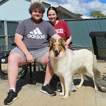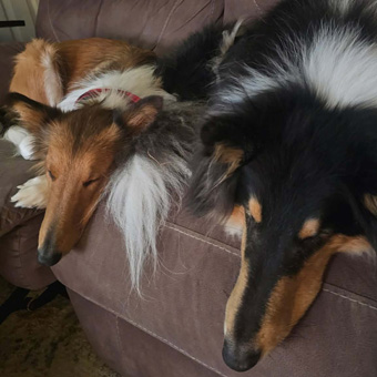 8/20/25: When Peter and Theresa decided it was time to welcome another collie, they knew my personality was just the match they were looking for. Blue had been missing his buddy, and he was overjoyed when I arrived. He needed a confident girl like me, and now we do everything together. I’ve settled right in, made myself at home, and it’s clear this is exactly where I belong. I couldn’t be happier to be part of this family.